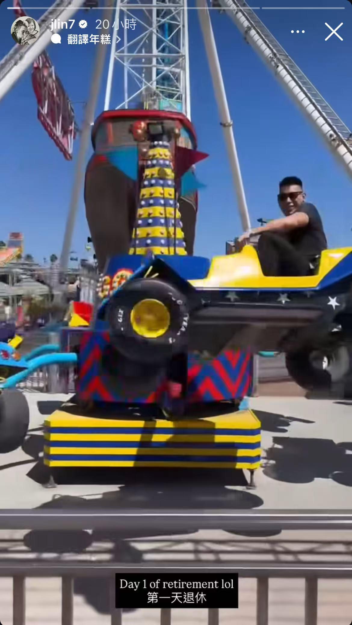 退役后的第一天,林书豪前往游乐场游玩/图片来源:林书豪个人Instagram
