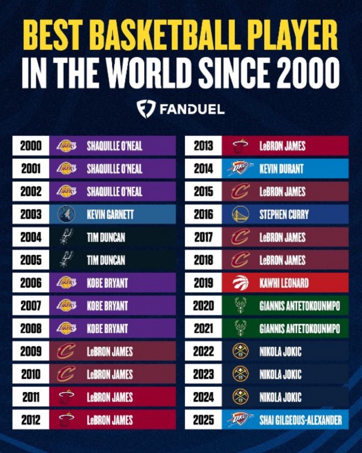 开云体育-美媒评21世纪各年最强球员:詹姆斯霸榜8年 约基奇科比奥尼尔×3