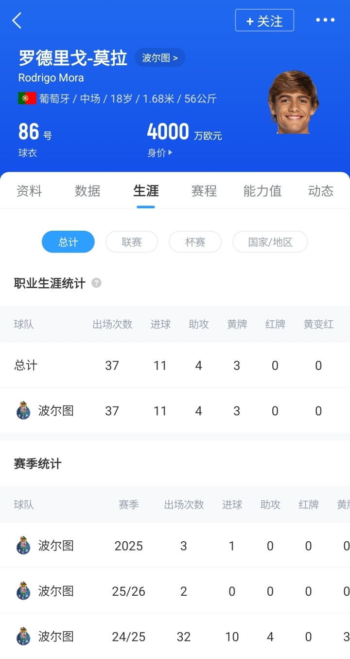 8月30日,根据记者Sacha Tavolieri的独家消息,沙特俱乐部吉达联合已同意支付7000万欧元解约金,准备签下波尔图18岁新星罗德里戈-莫拉。